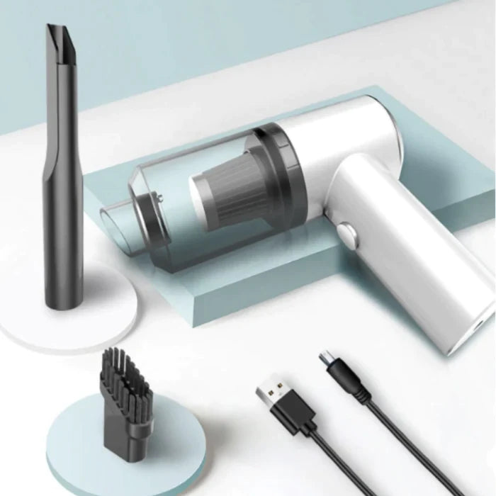 ASPIRADORA PORTÁTIL CON SOPLADOR es la evolución de las aspiradoras tradicionales! Tecnología americana que asegura una limpieza práctica y sin esfuerzo. ¡La misma potencia que las aspiradoras grandes en un dispositivo portátil inalámbrico! IDEAL PARA CUALQUIER HABITACIÓN¡Gracias a su potencia y diseño atrevido , es una excelente aspiradora para tener en casa! ✅ Aspira las migas y el pelo de la cama o el sofá✅ Elimina la suciedad de los pequeños huecos de los muebles✅ Limpia fundas de almohadas, edredones y almohadas✅ Limpia los lugares de difícil acceso de tu coche ¡PEQUEÑO EN TAMAÑO, GIGANTE EN POTENCIA! Con una potencia de succión de 6000PA y 1500 WATS, la Aspiradora AspiraMax® tiene la misma potencia que las grandes aspiradoras domésticas!! ¡Elimina hasta la suciedad más profunda! Con un diseño audaz y compacto, es perfecto para llevarlo dentro del automóvil sin ocupar espacio. ¡Limpia objetos punzantes, granos, snacks, el pelo de tu mascota y mucho más en viajes o salidas con tu familia! ¡BATERÍA DE ALTA DURACIÓN! ¡Con una potente batería incorporada, garantiza la limpieza que se merece! Con la carga USB rápida, puede cargar en cualquier lugar, incluso en su automóvil. Especificaciones:Material: Plástico ABSEl paquete incluye: 1x Aspiradora portátil -, 1x Cargador USB + 2 Puntas de regalo ¿Quieres tener tu auto o tu hogar impecable sin tener que lidiar con una aspiradora grande y pesada?Limpia hasta los rincones más profundos con nuestra aspiradora de mano con batería recargable, es compacta, liviana y fácil de usar. Puedes llevarla contigo donde quieras y utilizarla para limpiar cualquier superficie, como muebles y el interior de tu auto.2 en 1 🤯 Con solo cambiar el accesorio, podrás convertir tu aspiradora en un soplador de aireCaracterísticasDiseño compacto y liviano que es fácil de transportar y almacenarIncluye una variedad de accesorios para limpiar diferentes superficiesFiltro lavable fácil de limpiar y mantener